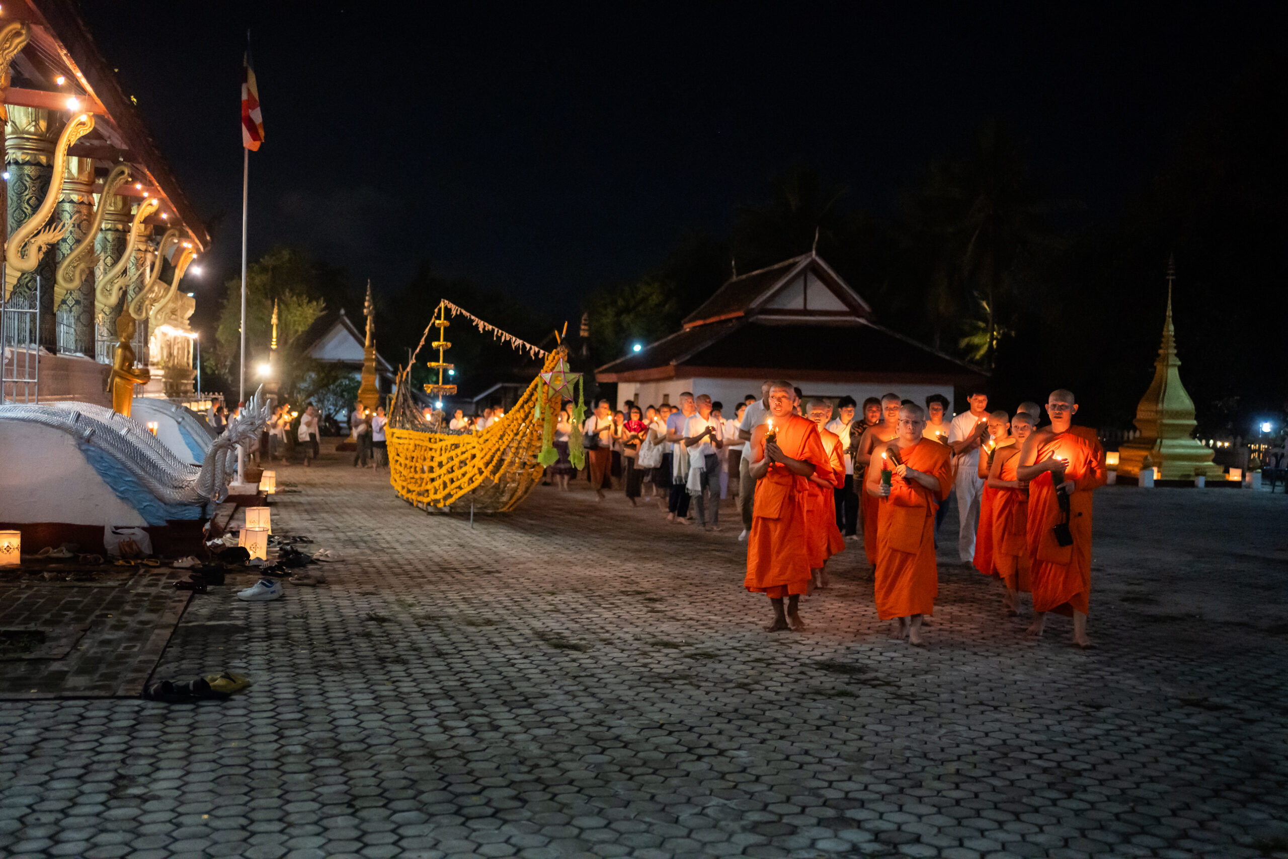 In Luang Prabang, a big parade happens that day. Most of the village of the town are building their own big boat, competing every year for the most beautiful one.